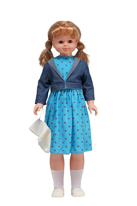 Рост куклы 83 см. Озвучена. Глаза вставные закрывающиеся. Цвет глаз может варьироваться. Ручки и голова выполнены из эластичного, приятного на ощупь винила, а туловище и ноги из пластмассы. Кукла оснащена механизмом движения, её можно водить за руку. Инструкция прилагается к кукле. Во избежание поломки механизма движения куклы её не рекомендуется усаживать. В спинку куклы вставлено звуковое устройство.