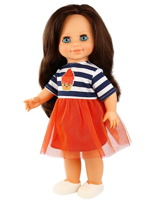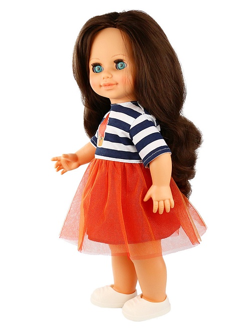 Кукла полностью выполнена из безопасного высокопрочного материала - винила. Высота 42 см. Кукла озвучена. Прекрасные длинные волосы, похожие на натуральные, можно завивать, расчёсывать и укладывать в разные причёски, меняя образ куклы. При нажатии на звуковое устройство она произносит фразы, побуждающие к действию.