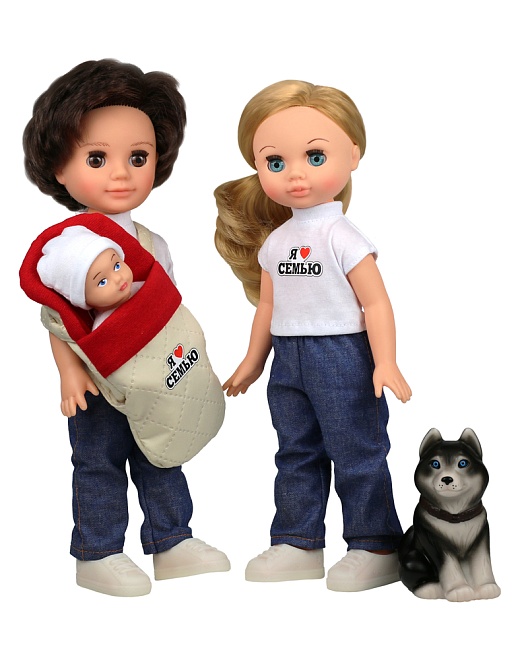 Подарите своему ребенку уникальный набор кукол Семья! Этот замечательный комплект станет прекрасным подарком для девочек от трех лет, создавая увлекательные истории и игры. В набор входят: кукла-мама, кукла-папа, милый пупс и собака породы Хаски (10 см), которая станет верным другом для всей семьи.