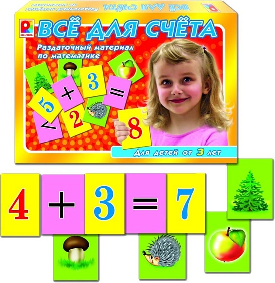 «Все для счета» - игра, которая в занимательной форме познакомит детей с цифрами от 1 до 10, математическими знаками, научит счёту в пределах 10 и сравнению количества предметов. Дети учатся по карточкам с картинками составлять математические задачи и примеры, используя карточки с цифрами. Карточки с предметными картинками также помогут игрокам сравнивать количество предметов с помощью знаков «больше» и «меньше». Игра развивает математические способности, логику, память. Элементы выполнены из прочного картона, окрашены нетоксичными красками.