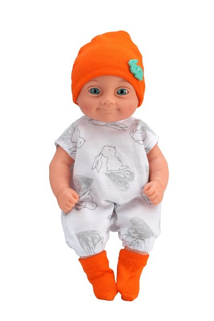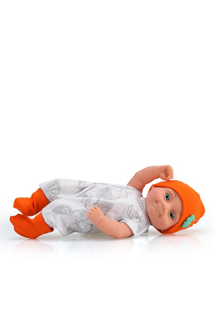 Игровые возможности куклы: благодаря небольшому размеру и продуманной конструкции эту куклу легко и удобно брать на ручки, сажать, укладывать спать, переодевать. Карапуза можно купать, так как у него вставные незакрывающиеся глазки, рельефный кукольный паричок и нет звукового устройства. Эта кукла разнообразит увлекательный игровой процесс, в результате которого развивается творческое воображение и мелкая моторика ребенка.
